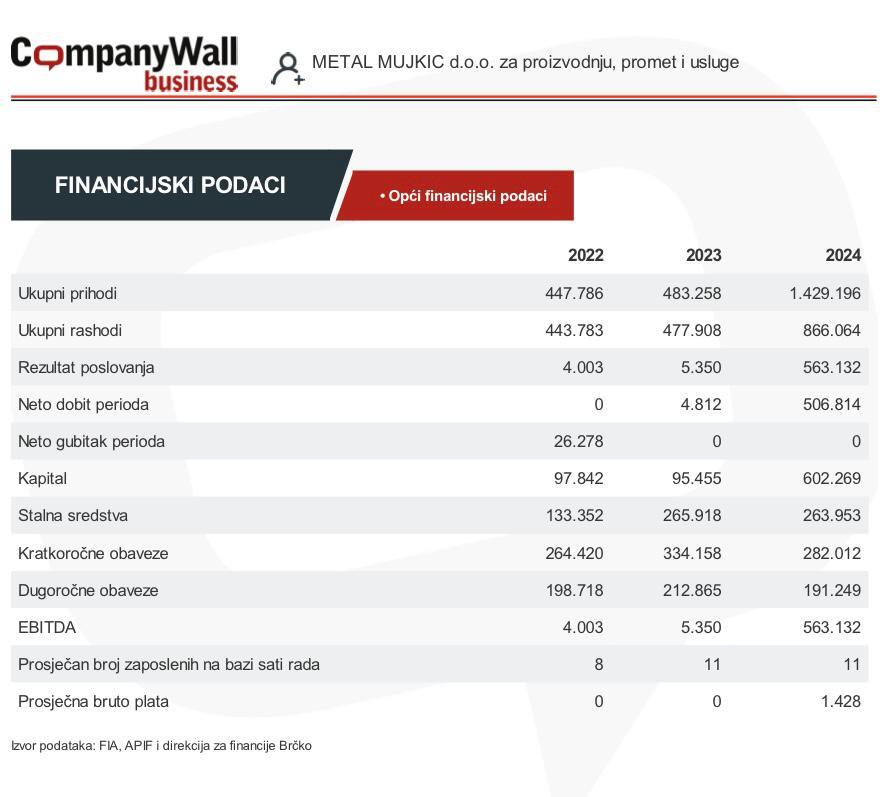 Prema javno dostupnim finansijskim izvještajima, kompanija METAL MUJKIĆ d.o.o., osnovana 2006. godine i registrovana u industrijskoj zoni u Kalesiji, godinama je poslovala stabilno, ali bez spektakularnih rezultata. Međutim, ono što se događa u posljednje dvije godine predstavlja finansijski skok koji se ne može ignorisati – niti posmatrati van političkog konteksta.