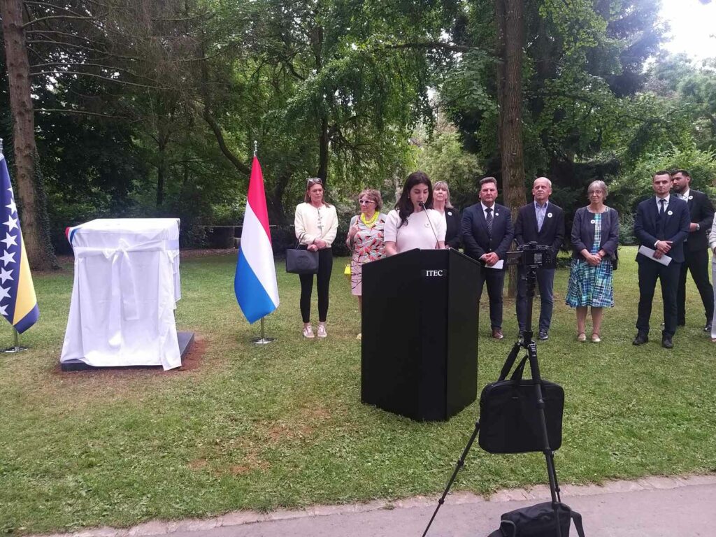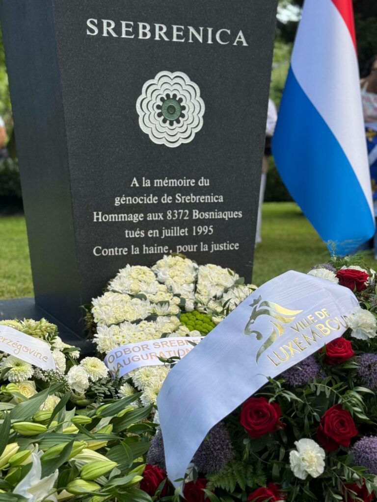 U prelijepom ambijentu parka Tony Neuman u četvrti Limpertsberg, uz prisustvo visokih zvaničnika, ambasadora, predstavnika grada Luksemburga, porodica žrtava i brojnih građana, upriličena je svečana inauguracija prvog spomen-obilježja u Luksemburgu posvećenog žrtvama Genocida u Srebrenici.