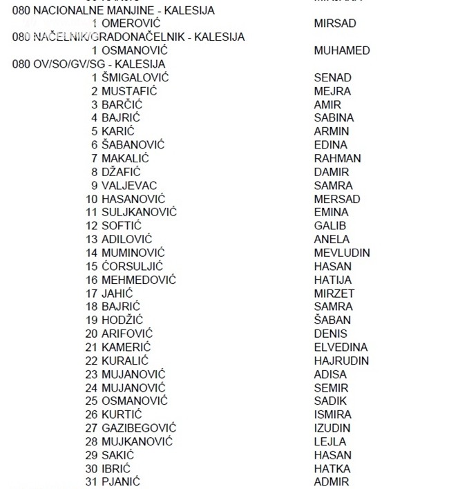 Pogledajte koje liste su ovjerene za Kalesiju..