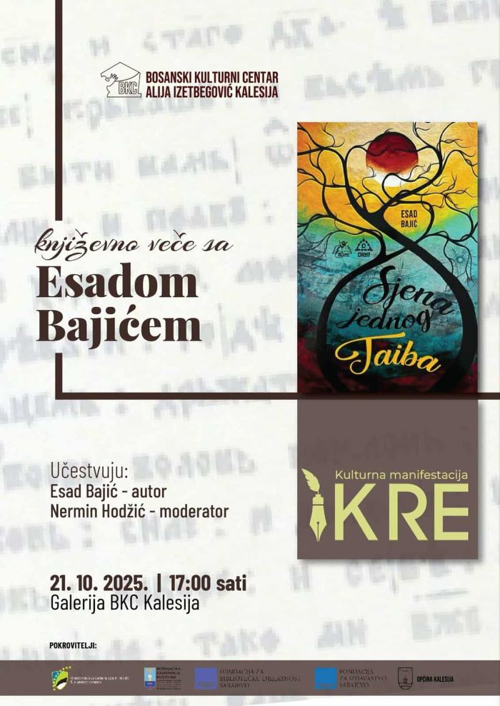 U okviru manifestacije IKRE 2025, u utorak, 21. oktobra, s početkom u 17.00 sati, u Kalesiji će s eodržati Književno veče s Esadom Bajićem. Razgovor s Esadom Bajićem vodit će glumac Nermin Hodžić.