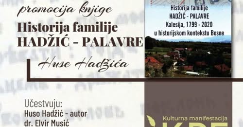 U okviru kulturne manifestacije „IKRE 2025“, u utorak, 04.11.2025. godine, s početkom u 17:00 sati, u galeriji BKC-a Kalesija, održat će se promocija knjige Huse Hadžića pod nazivom „Historija familije Hadžić – Palavre Kalesija, 1799–2020, u historijskom kontekstu Bosne“.