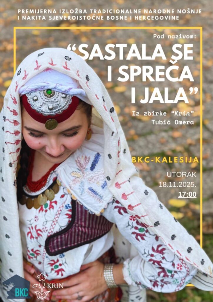 U BKC-u “Alija Izetbegović” Kalesija, u utorak, 18.11.2025. godine sa početkom u 17:00 sati biće upriličeno otvaranje Izložbe tradicionalne narodne nošnje i nakita sjeveroistočne Bosne pod nazivom ”Sastala se i Spreča i Jala”, autora Omera Tubića.