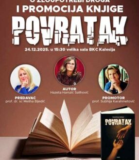 U Galeriji BKC-a “Alija Izetbegović” Kalesija, danas, (24.12.2025. – srijeda) s početkom u 15:30 sati će biti održano edukativno predavanje o zloupotrebi droga i promocija knjige „Povratak“, autorice Hazeta Hamzić Salihović.